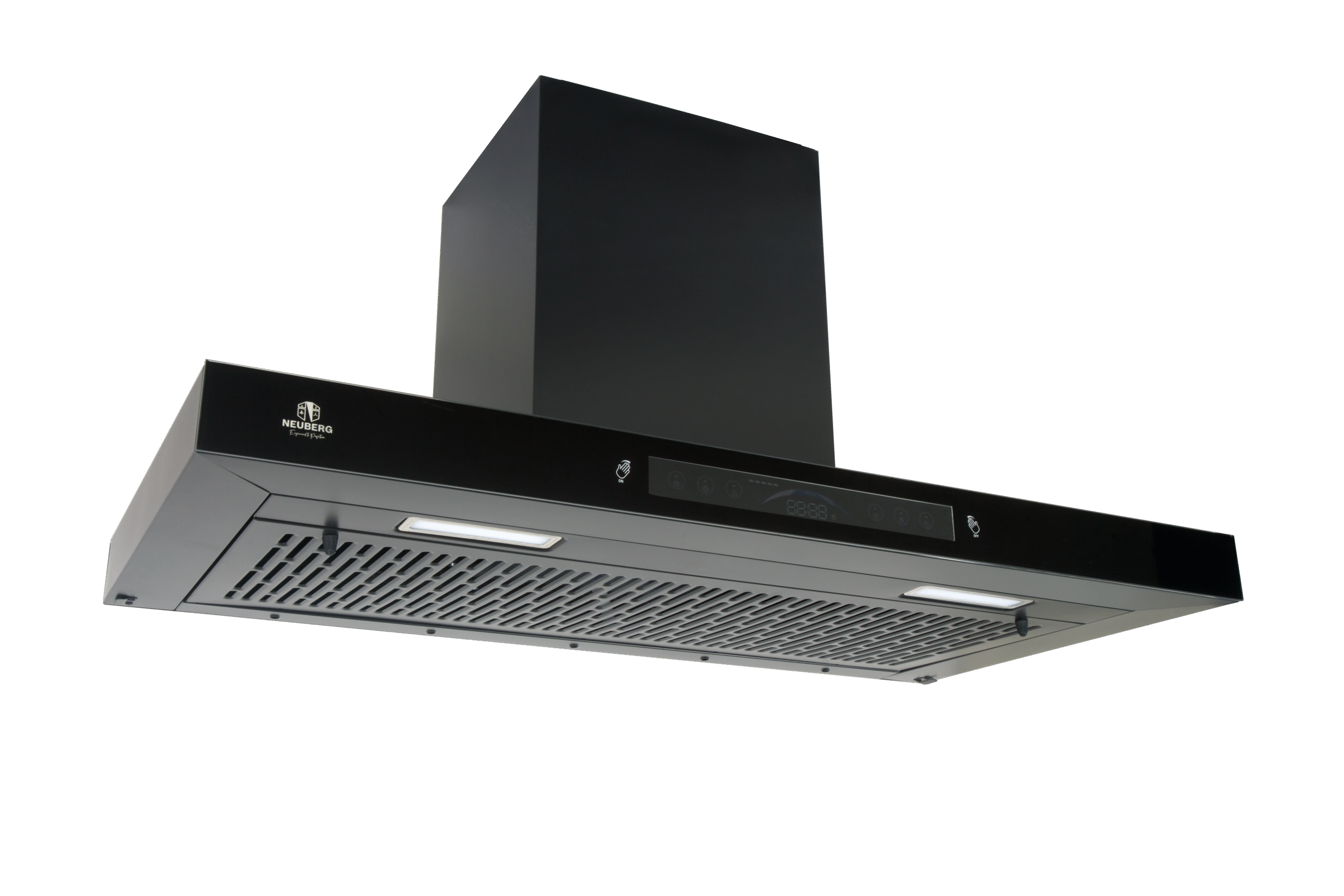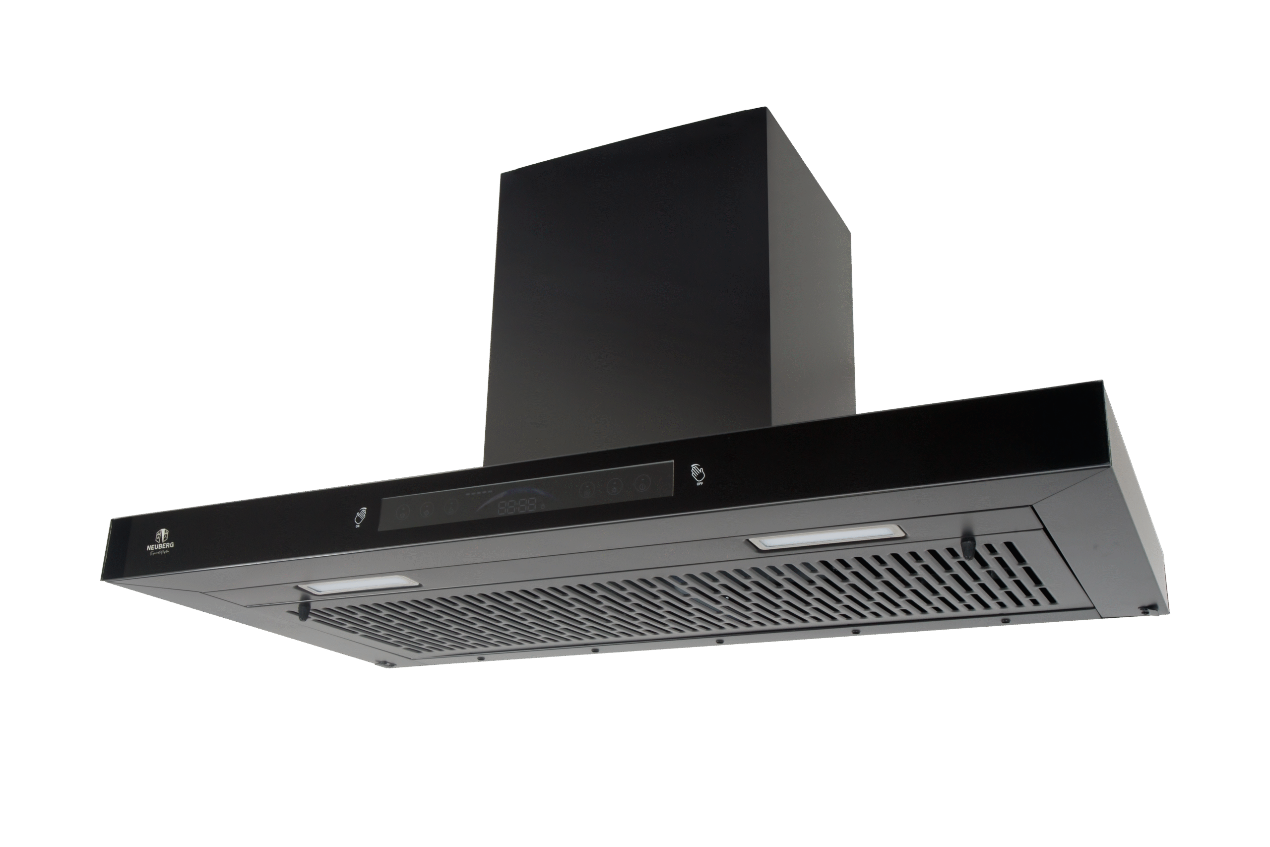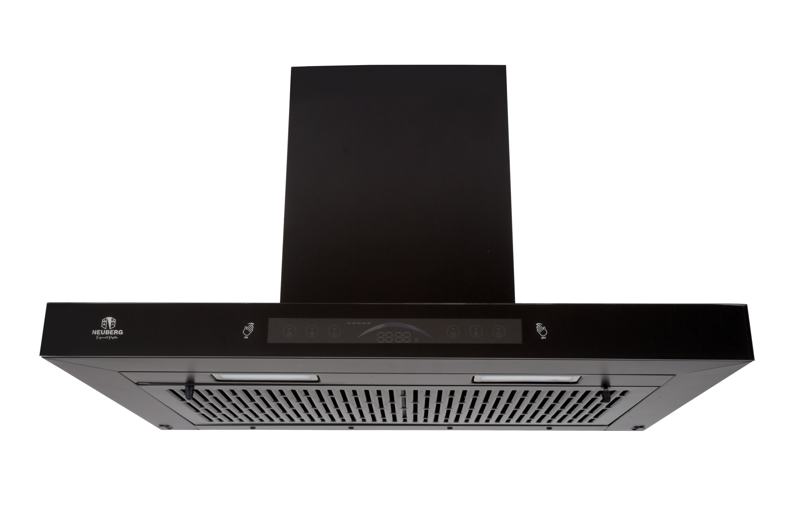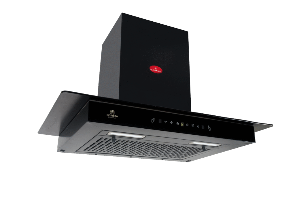 The Neuberg Curve 60 CM Black Coating Chimney blends modern aesthetics with powerful functionality. Its 200 W hybrid motor and 6″ blower deliver high suction of 1250 m³/hr to eliminate smoke and odors instantly. The 4 mm front and 5 mm top curved glass panels enhance visual appeal, while the motion-sensor auto-clean feature ensures hands-free convenience. A stylish upgrade for any contemporary kitchen.