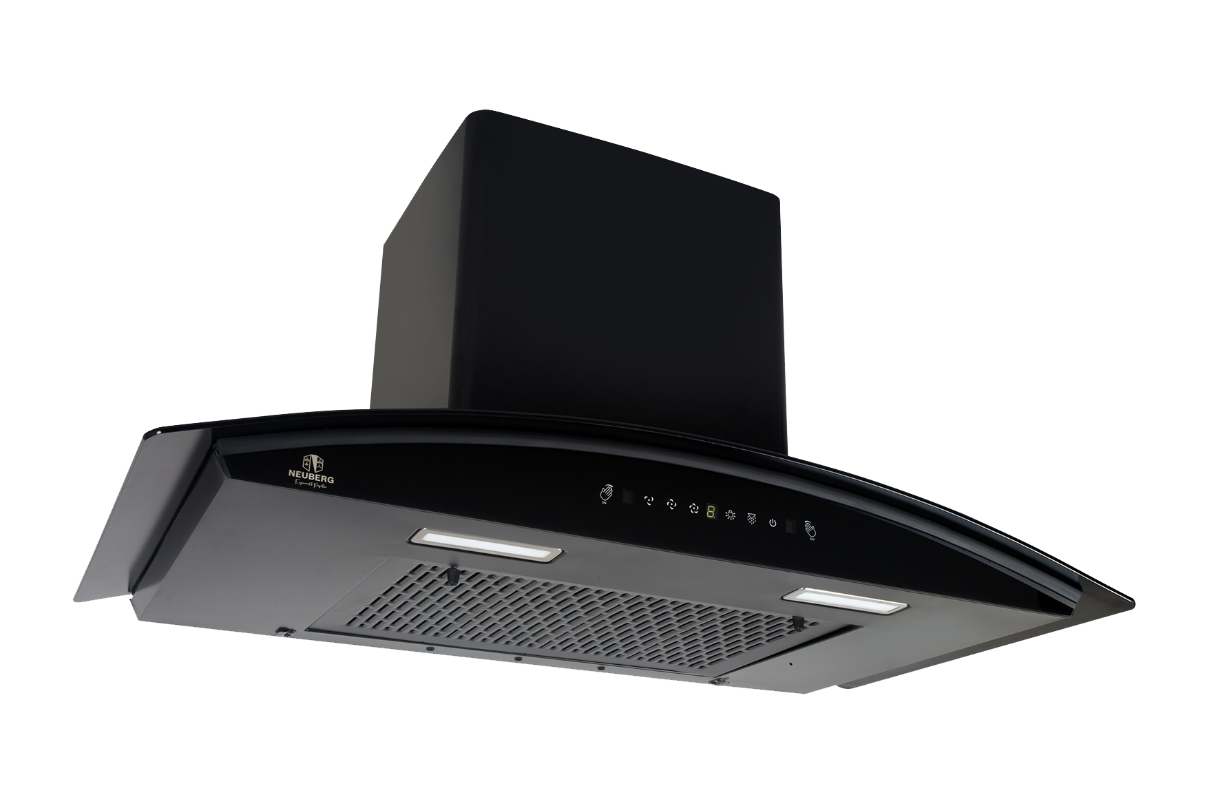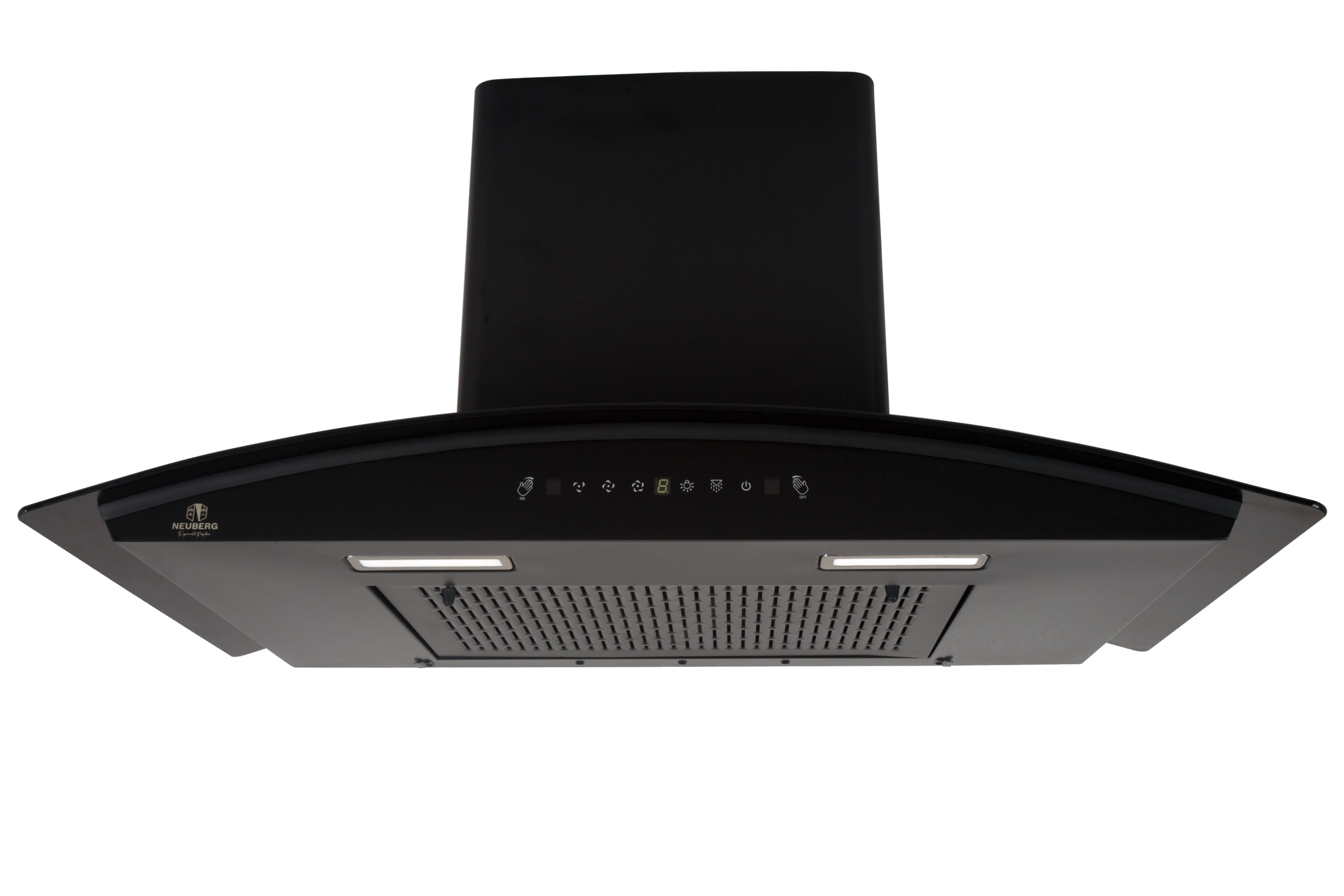 The Neuberg Curve 75 CM Black Coating Chimney is crafted for modern kitchens that demand style and strength. Featuring a 180 W copper motor and 9″ metal blower, it efficiently handles heavy smoke with 1500 m³/hr suction. Its motion-sensor operation, filterless design, and auto-clean system ensure seamless maintenance. The dual-layer curved glass body exudes elegance and complements contemporary interiors perfectly.